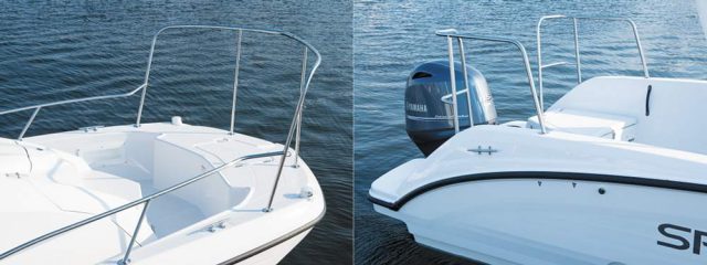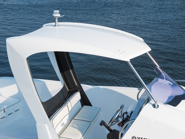 EXの屋根(ハードトップ)はフロントガラスつきで、ワイパー&ウォッシャーを含めて標準です。エンクロージャーのオプション設定はありません。ちなみに、ノーマルとEXでは、屋根取付部の艇体形状も異なります。