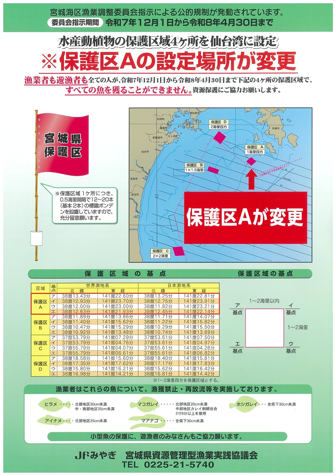 仙台湾における水産動植物の保護区域の設定について、関係各所から周知依頼がありましたので掲載いたします。