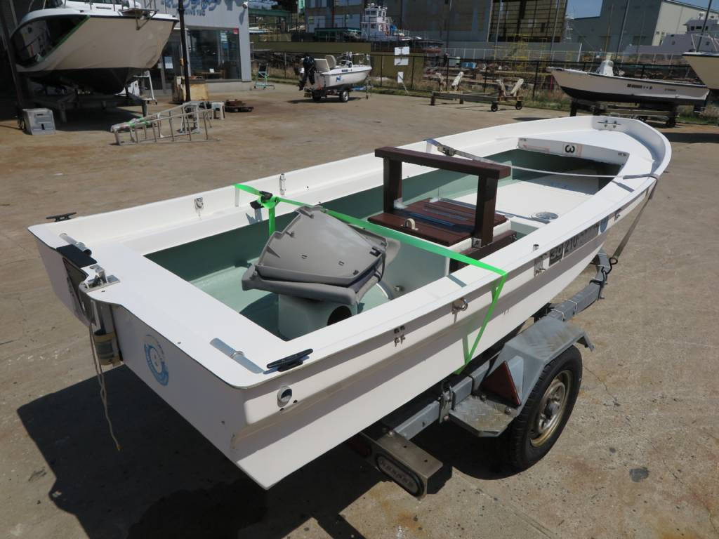| コメント | 湘南パーフェクト工業のパーフェクター11です。傷等は少なく、状態は良い方かと思います。船外機はヤマハF6CMHS新品をセットします。軽トレーラーもお付けします。船舶検査は切れていますので、受検後のお渡しとなります。6馬力船外機搭載のため、操縦にはボート免許が必要です。 付属トレーラーについて・・・ロフトトレーラー製(初度登録はH16年9月。車検満了日はR8年7月29日)、軽自動車です。申し訳ございませんが、当店ではトレーラーの整備や車検、ヒッチメンバーの取り付けなどは出来かねます。お手数ですが、お客様にてご手配ください。 ※船体、トレーラーは現状渡しです。 | ||||||